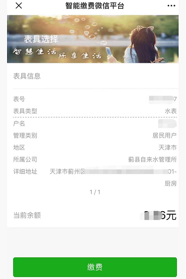 點(diǎn)擊繳費(fèi)充值,如果綁定了多塊水表,左右滑動選擇要繳納水費(fèi)的表具后點(diǎn)擊繳費(fèi)按鈕。如圖